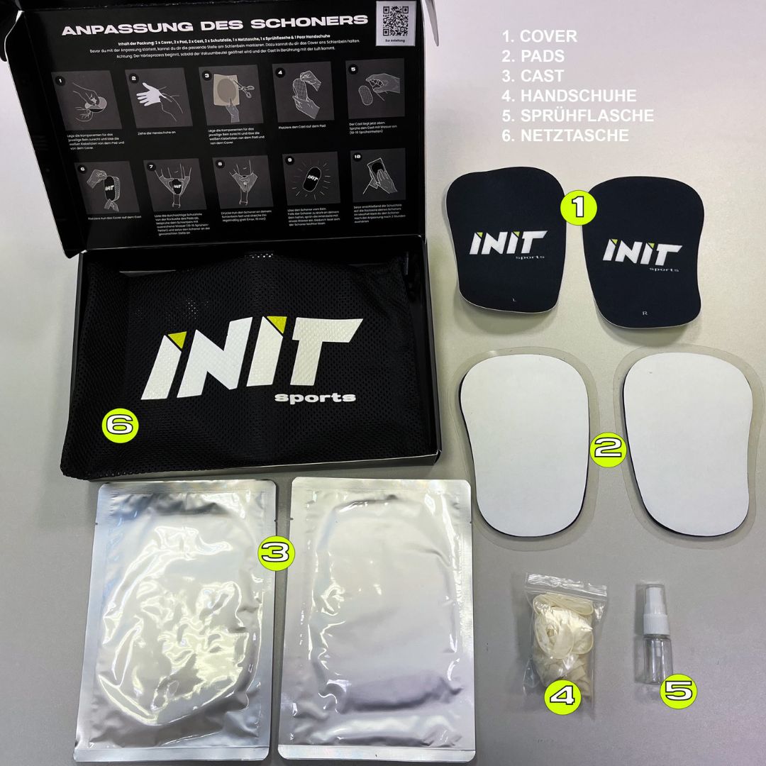 The fitting process is completed within 20 minutes and you have your individual shin guards that fit your leg perfectly.
